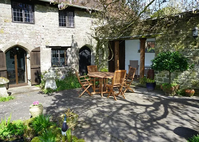 Character 2 Double Bedroom Cottage In Shaftesbury disponibiliza pátio e jardim para o lazer dos hóspedes, e fica a uma distância de 850 metros de Gold Hill Museum. A acomodação inclui parque de estacionamento privado gratuito e terraço com vista para o jardim.